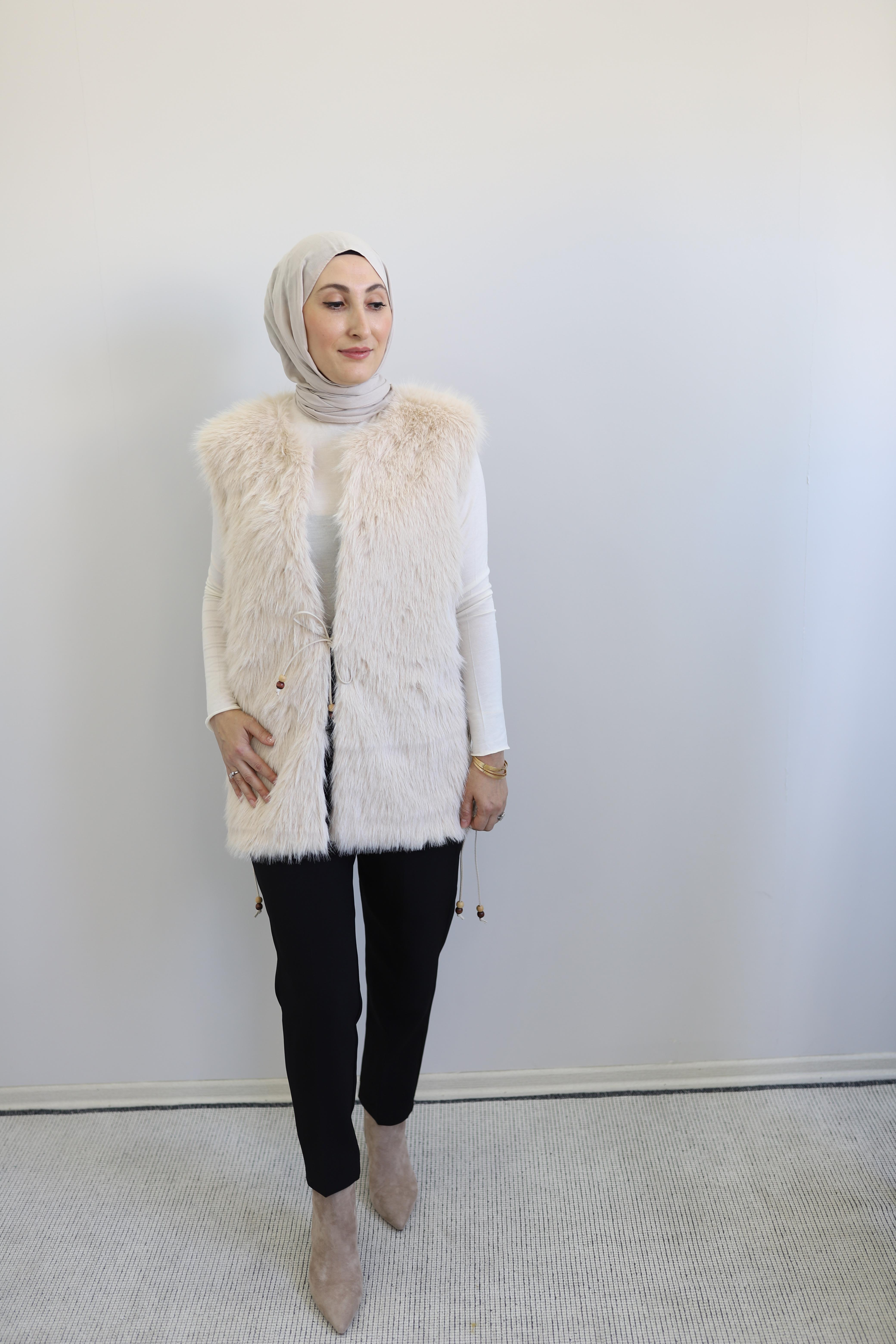 Soğuk havalarda stilinize sıcak bir dokunuş katacak olan bu kürk görünümlü yelek, modern ve zarif tasarımıyla dikkat çekiyor. Yumuşacık dokusuyla hem şıklığı hem de konforu bir araya getiren model, yan kısımlarındaki bağlama detayları sayesinde feminen bir hava katıyor.