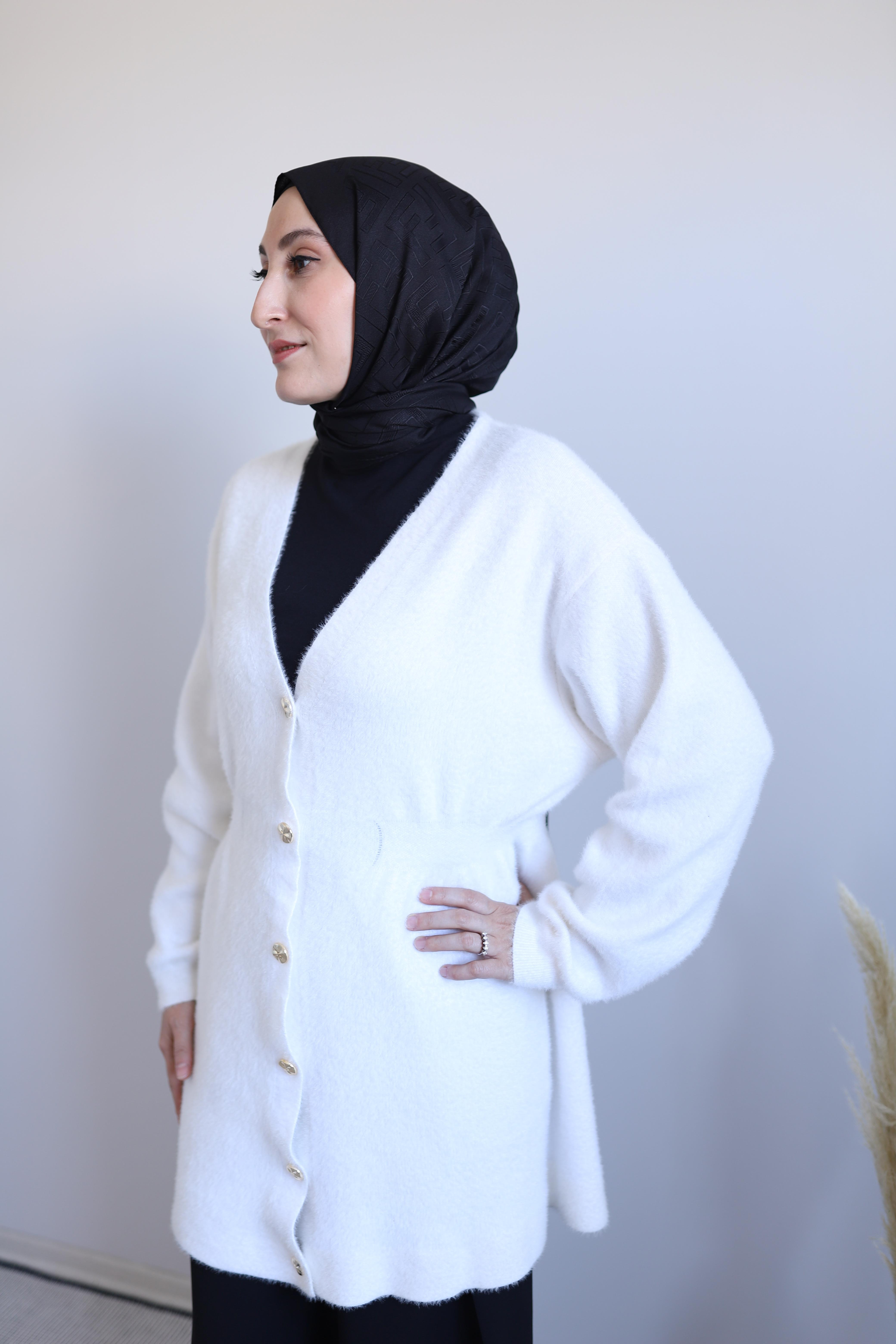 Zarif ve rahat tasarımıyla öne çıkan bu ekru uzun hırka, yumuşacık dokusuyla gün boyu konfor sunar. Ön kısmındaki zarif düğmeler ve bel kısmındaki kuşak detayı, hem şıklık hem de kullanışlılık kazandırır. Hem günlük kombinlerde hem de özel davetlerde kolayca tercih edebileceğiniz bu parça, gardırobunuzun kurtarıcı parçalarından biri olacak.